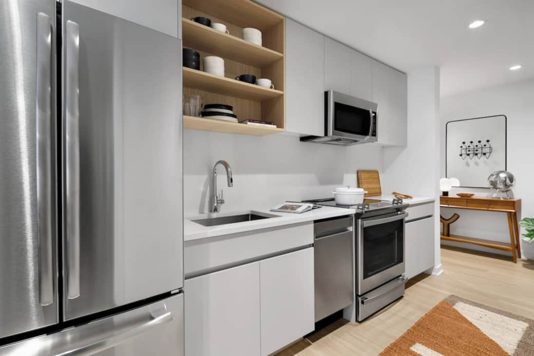 Blender, Coffee machine, Cooking utensils, Dishwasher, Kitchen stove, Kitchenette, Microwave, Oven, Refrigerator, Toaster
